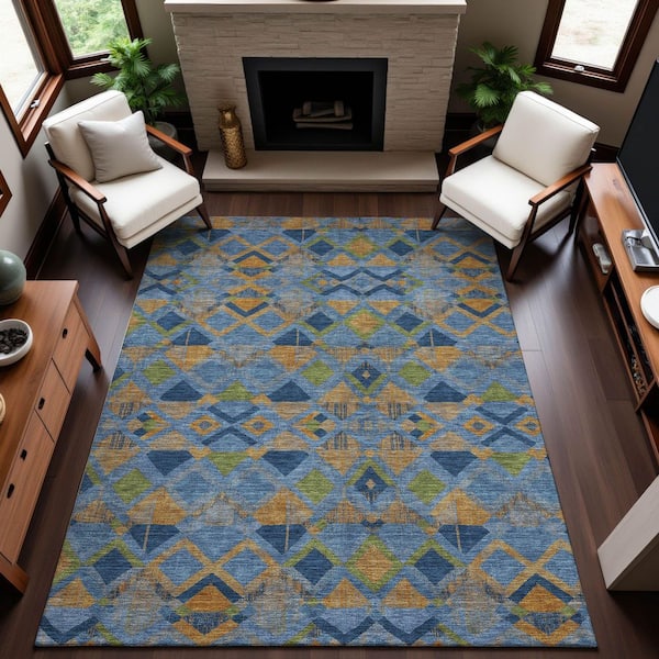 Mayfield Premium Machine Washable Abstract AMF1308 Denim 3 ft. x 5 ft. Area Rug