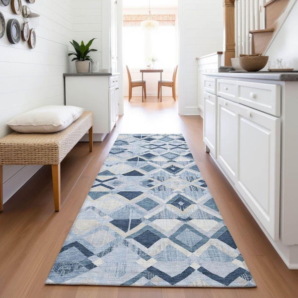 Mayfield Premium Machine Washable Abstract AMF1308 Sky 2 ft. 3 in. x 7 ft. 6 in. Runner Rug
