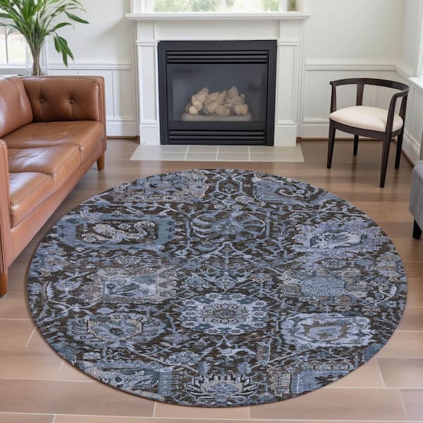 Mayfield Premium Machine Washable Abstract AMF1320 Denim 8 ft. x 8 ft. Round Rug