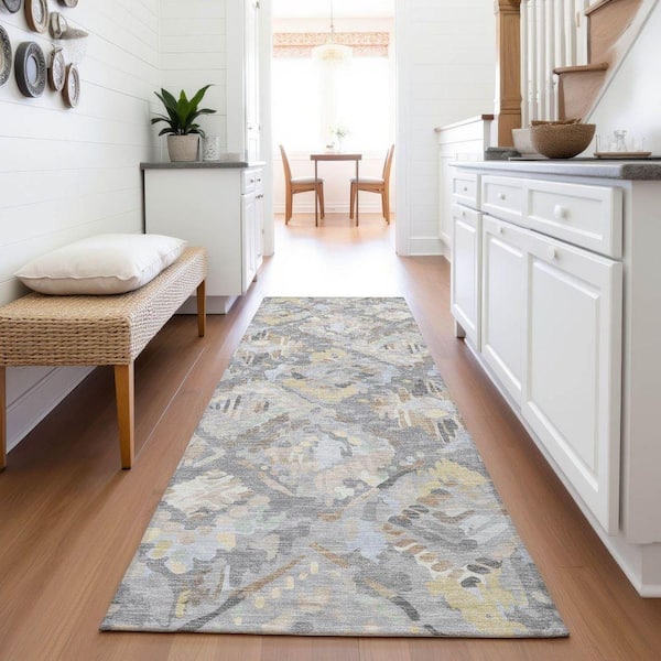 Mayfield Premium Machine Washable Abstract AMF1326 Gray 2 ft. 3 in. x 7 ft. 6 in. Runner Rug