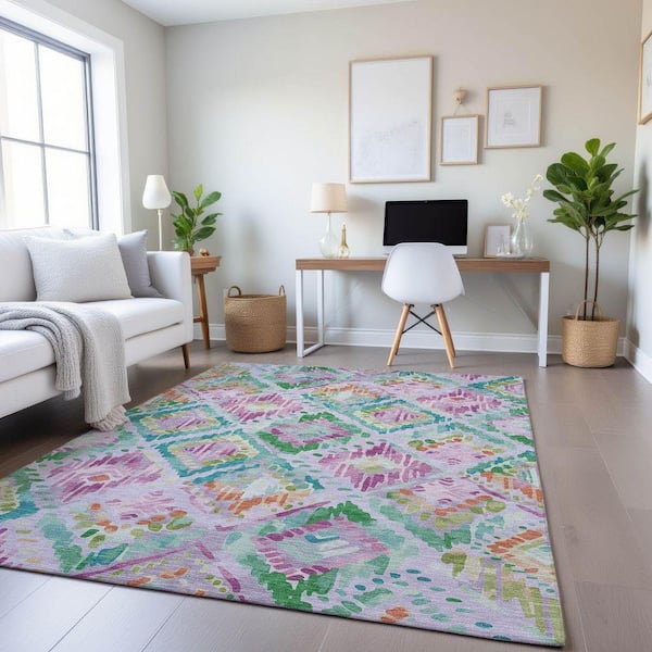Mayfield Premium Machine Washable Abstract AMF1326 Lavender 9 ft. x 12 ft. Area Rug