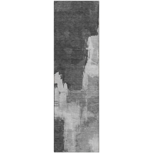Mayfield Premium Machine Washable Abstract AMF1332 Gray 2 ft. 3 in. x 7 ft. 6 in. Runner Rug