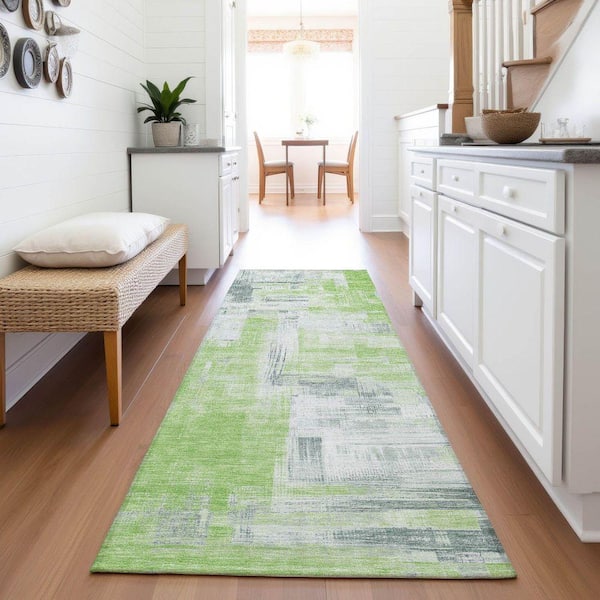 Mayfield Premium Machine Washable Abstract AMF1338 Aloe 2 ft. 3 in. x 7 ft. 6 in. Runner Rug
