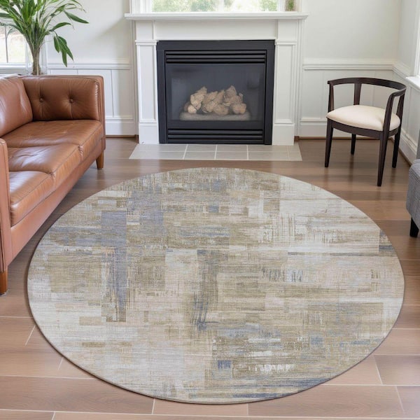 Mayfield Premium Machine Washable Abstract AMF1338 Ivory 8 ft. x 8 ft. Round Rug