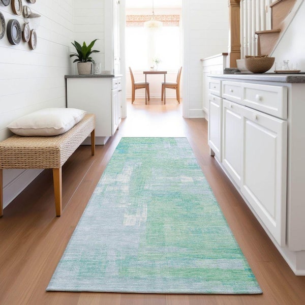 Mayfield Premium Machine Washable Abstract AMF1338 Sky 2 ft. 3 in. x 7 ft. 6 in. Runner Rug