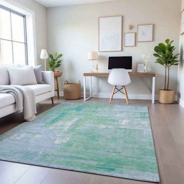 Mayfield Premium Machine Washable Abstract AMF1338 Sky 8 ft. x 10 ft. Area Rug