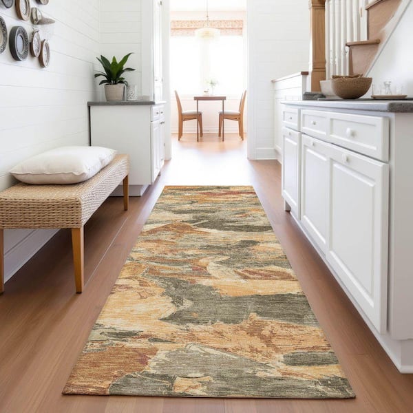 Mayfield Premium Machine Washable Abstract AMF1344 Copper 2 ft. 3 in. x 7 ft. 6 in. Runner Rug