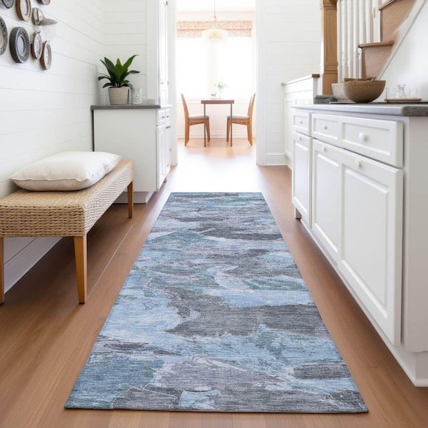 Mayfield Premium Machine Washable Abstract AMF1344 Denim 2 ft. 3 in. x 7 ft. 6 in. Runner Rug