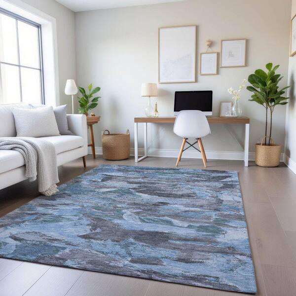 Mayfield Premium Machine Washable Abstract AMF1344 Denim 9 ft. x 12 ft. Area Rug