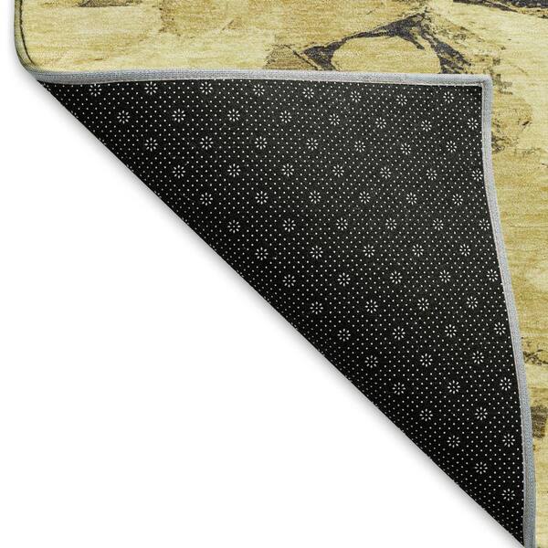 Mayfield Premium Machine Washable Abstract AMF1344 Gold 8 ft. x 8 ft. Round Rug