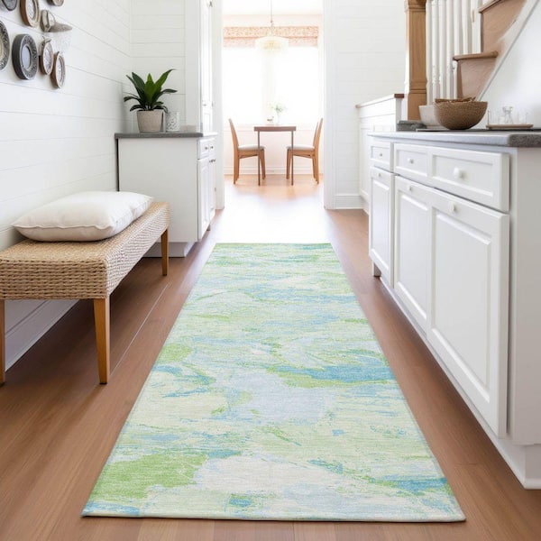 Mayfield Premium Machine Washable Abstract AMF1344 Mint 2 ft. 3 in. x 7 ft. 6 in. Runner Rug