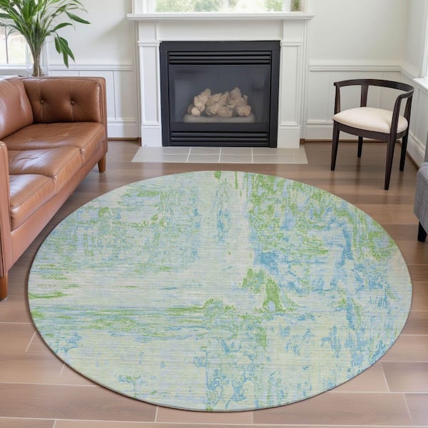 Mayfield Premium Machine Washable Abstract AMF1350 Mint 8 ft. x 8 ft. Round Rug