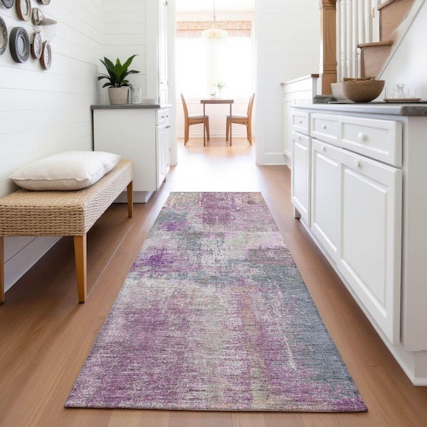 Mayfield Premium Machine Washable Abstract AMF1354 Lavender 2 ft. 3 in. x 7 ft. 6 in. Runner Rug
