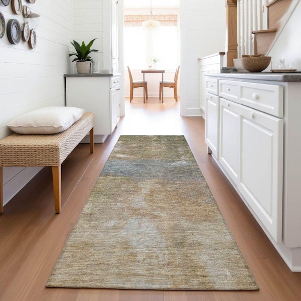 Mayfield Premium Machine Washable Abstract AMF1363 Copper 2 ft. 3 in. x 7 ft. 6 in. Runner Rug