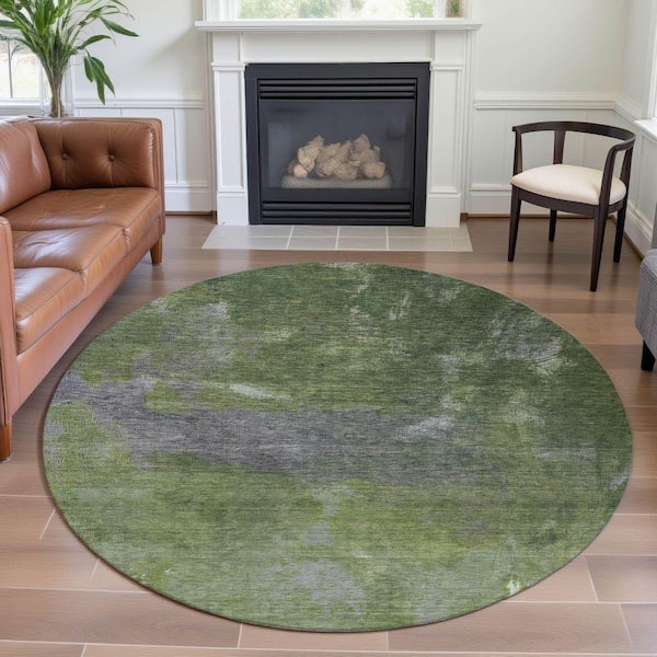 Mayfield Premium Machine Washable Abstract AMF1363 Green 8 ft. x 8 ft. Round Rug