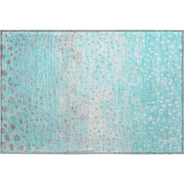 Mayfield Premium Machine Washable Abstract AMF1366 Aqua 2 ft. x 3 ft. Area Rug