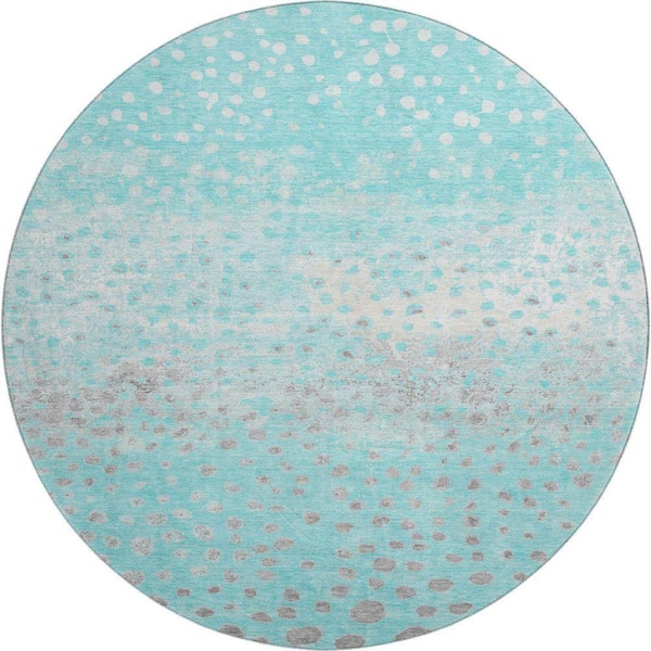 Mayfield Premium Machine Washable Abstract AMF1366 Aqua 8 ft. x 8 ft. Round Rug