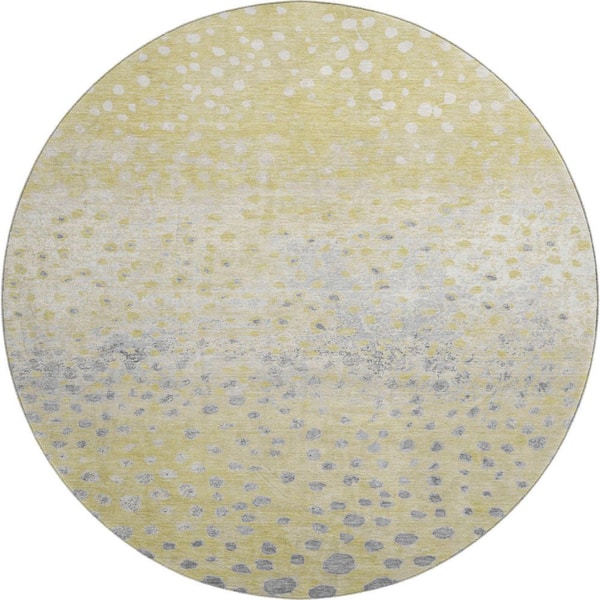 Mayfield Premium Machine Washable Abstract AMF1366 Gold 8 ft. x 8 ft. Round Rug