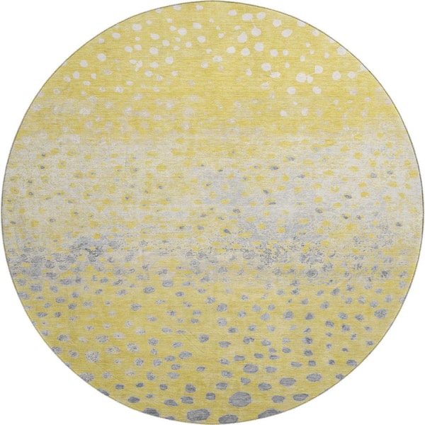 Mayfield Premium Machine Washable Abstract AMF1366 Yellow 8 ft. x 8 ft. Round Rug