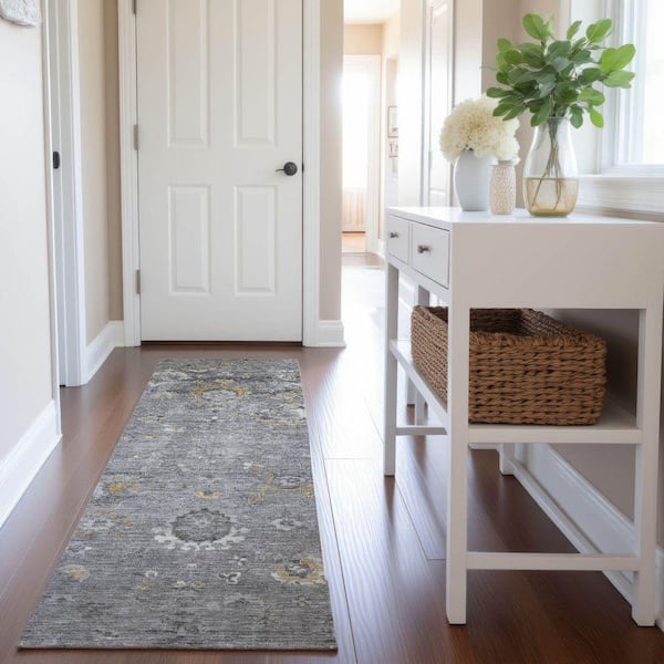 Mayfield Premium Machine Washable Abstract AMF1371 Gray 2 ft. 3 in. x 7 ft. 6 in. Runner Rug