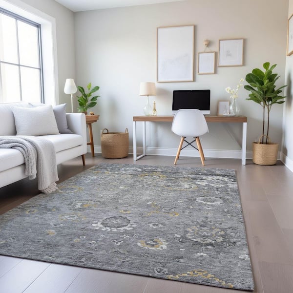 Mayfield Premium Machine Washable Abstract AMF1371 Gray 8 ft. x 10 ft. Area Rug