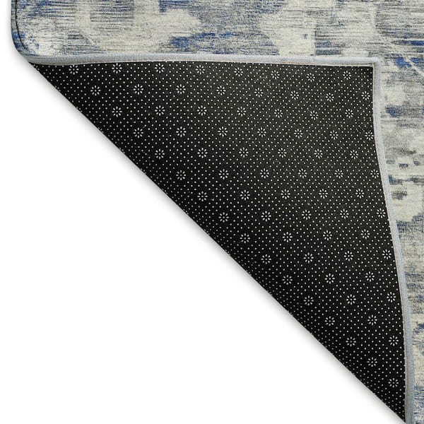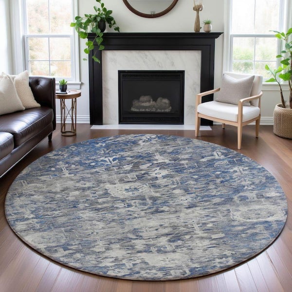 Mayfield Premium Machine Washable Abstract AMF1375 Blue 8 ft. x 8 ft. Round Rug
