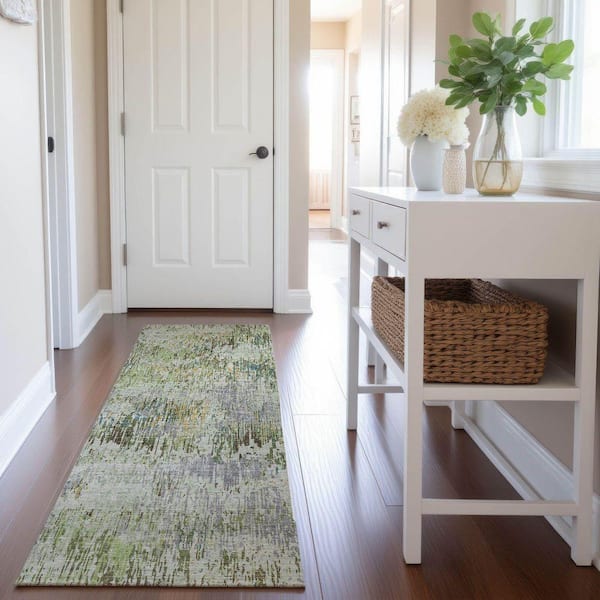 Mayfield Premium Machine Washable Abstract AMF1377 Aloe 2 ft. 3 in. x 7 ft. 6 in. Runner Rug