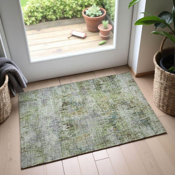 Mayfield Premium Machine Washable Abstract AMF1377 Aloe 2 ft. x 3 ft. Area Rug