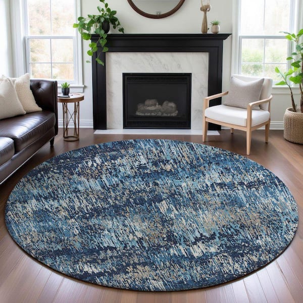 Mayfield Premium Machine Washable Abstract AMF1377 Navy 8 ft. x 8 ft. Round Rug