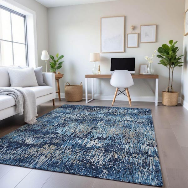 Mayfield Premium Machine Washable Abstract AMF1377 Navy 9 ft. x 12 ft. Area Rug
