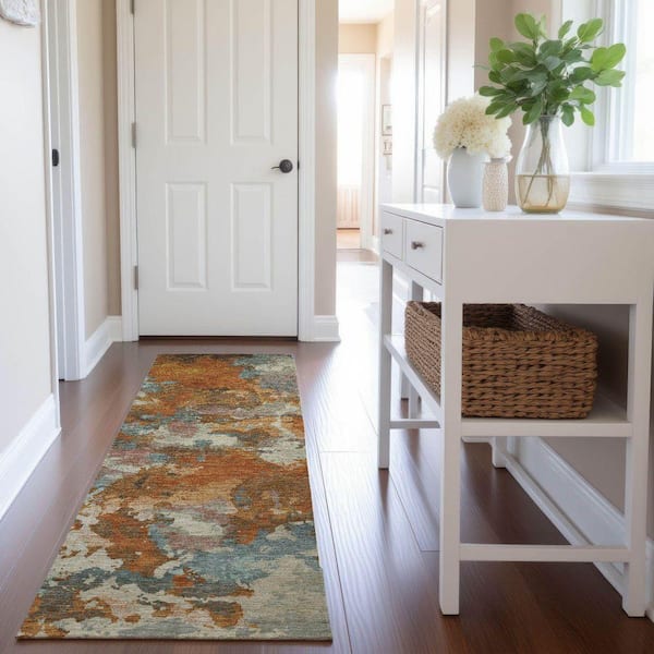 Mayfield Premium Machine Washable Abstract AMF1381 Copper 2 ft. 3 in. x 7 ft. 6 in. Runner Rug