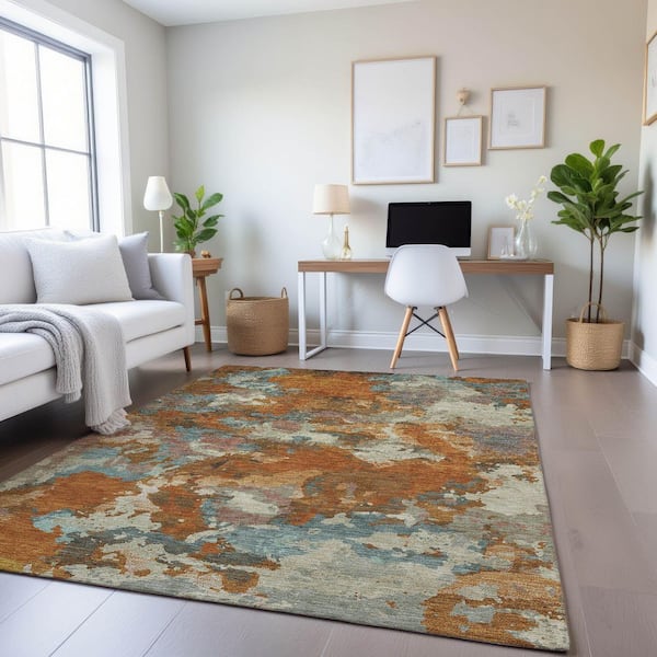 Mayfield Premium Machine Washable Abstract AMF1381 Copper 3 ft. x 5 ft. Area Rug