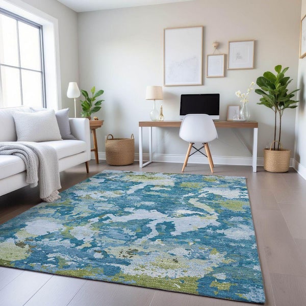 Mayfield Premium Machine Washable Abstract AMF1381 Denim 5 ft. x 7 ft. 6 in. Area Rug