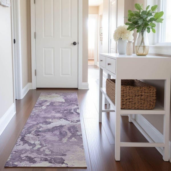 Mayfield Premium Machine Washable Abstract AMF1381 Lavender 2 ft. 3 in. x 7 ft. 6 in. Runner Rug