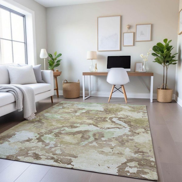 Mayfield Premium Machine Washable Abstract AMF1382 Taupe 9 ft. x 12 ft. Area Rug
