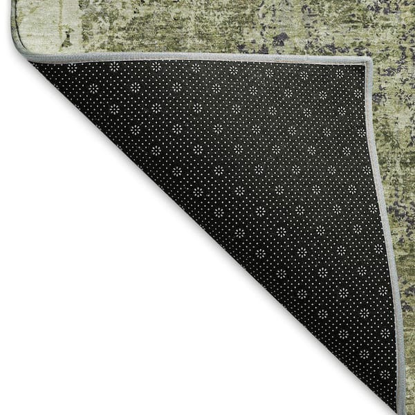 Mayfield Premium Machine Washable Abstract AMF1389 Aloe 8 ft. x 8 ft. Round Rug