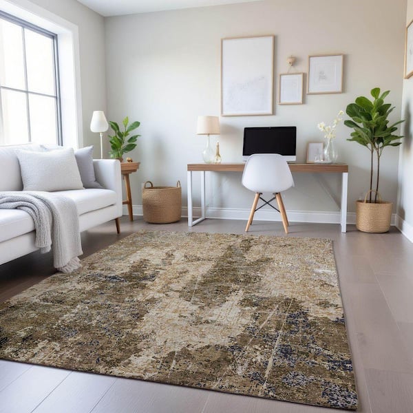 Mayfield Premium Machine Washable Abstract AMF1389 Khaki 9 ft. x 12 ft. Area Rug
