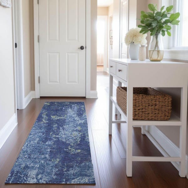 Mayfield Premium Machine Washable Abstract AMF1389 Navy 2 ft. 3 in. x 7 ft. 6 in. Runner Rug