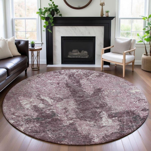 Mayfield Premium Machine Washable Abstract AMF1389 Pink 8 ft. x 8 ft. Round Rug