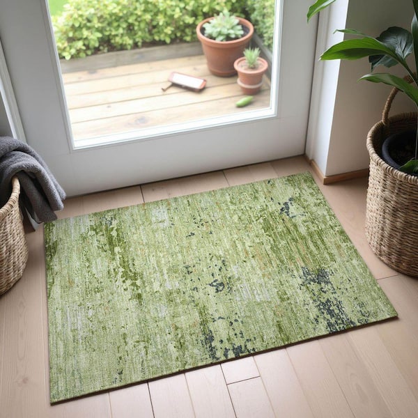 Mayfield Premium Machine Washable Abstract AMF1393 Aloe 2 ft. x 3 ft. Area Rug