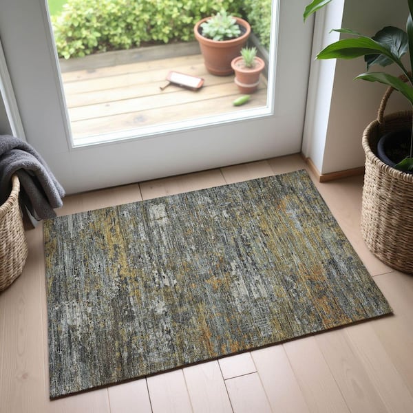 Mayfield Premium Machine Washable Abstract AMF1393 Gold 2 ft. x 3 ft. Area Rug