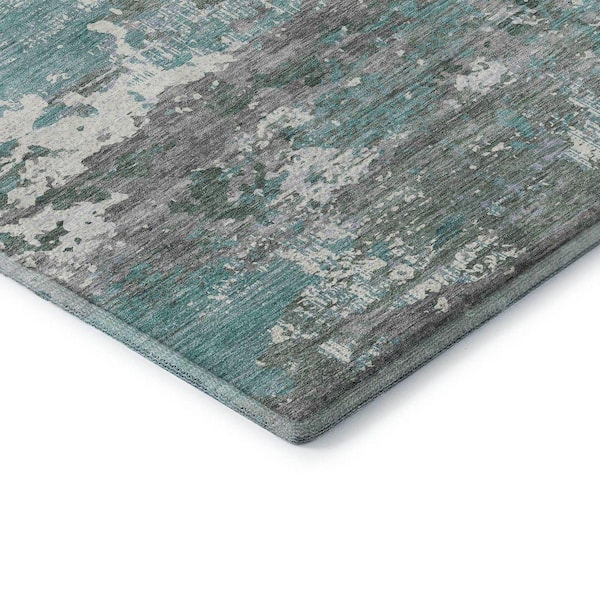 Mayfield Premium Machine Washable Abstract AMF1393 Seafoam 3 ft. x 5 ft. Area Rug