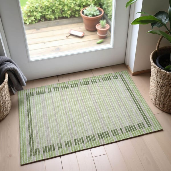 Mayfield Premium Machine Washable Abstract AMF1398 Aloe 2 ft. x 3 ft. Area Rug