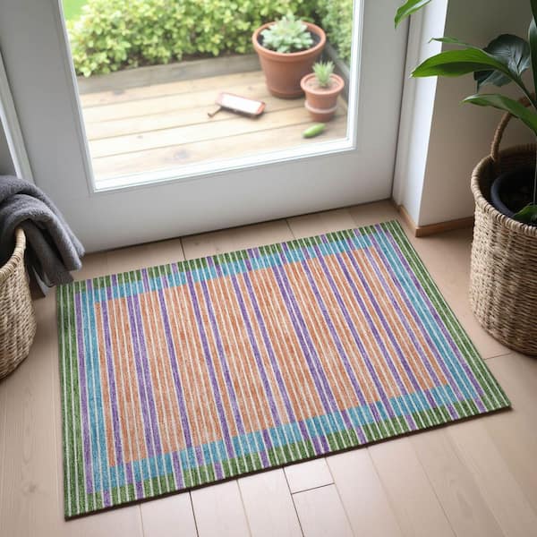 Mayfield Premium Machine Washable Abstract AMF1398 Lime 2 ft. x 3 ft. Area Rug