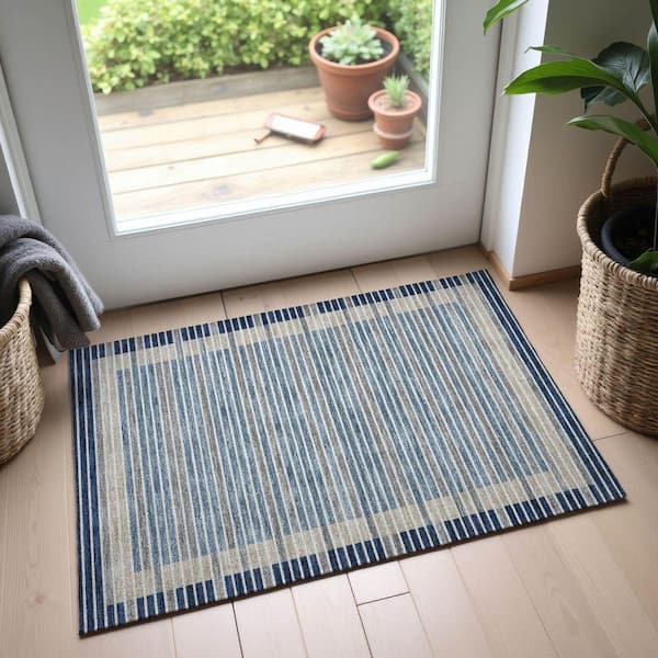 Mayfield Premium Machine Washable Abstract AMF1398 Navy 2 ft. x 3 ft. Area Rug
