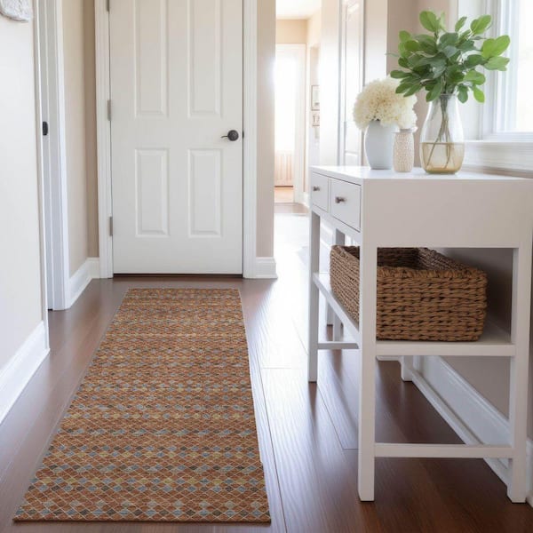 Mayfield Premium Machine Washable Abstract AMF1408 Paprika 2 ft. 3 in. x 7 ft. 6 in. Runner Rug