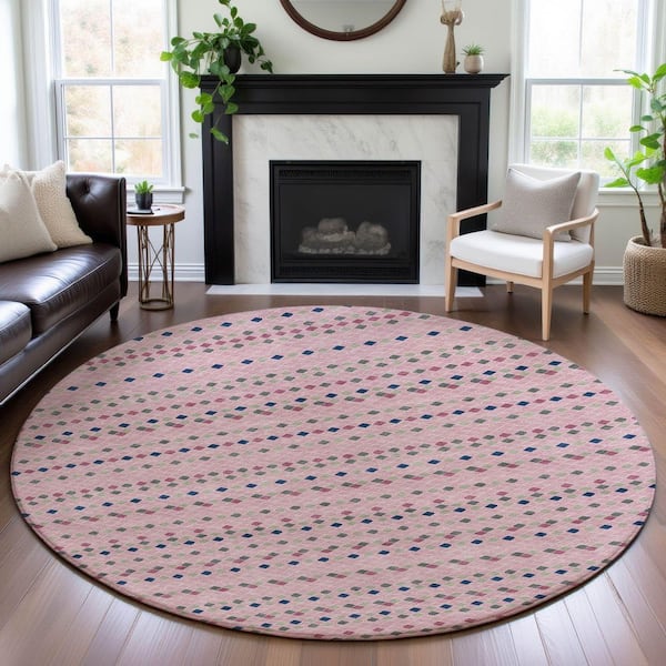 Mayfield Premium Machine Washable Abstract AMF1408 Pink 8 ft. x 8 ft. Round Rug