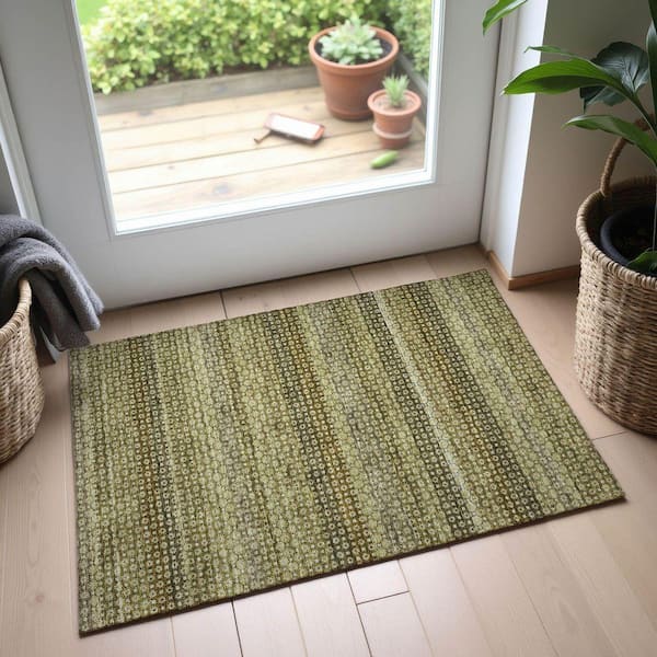 Mayfield Premium Machine Washable Abstract AMF1419 Aloe 2 ft. x 3 ft. Area Rug