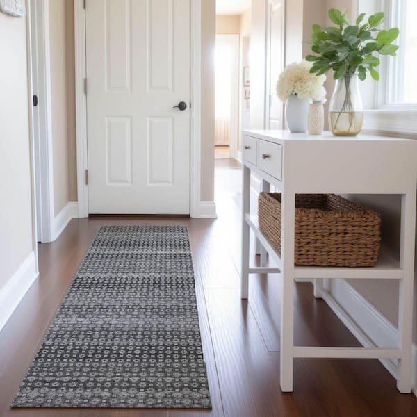 Mayfield Premium Machine Washable Abstract AMF1419 Gray 2 ft. 3 in. x 7 ft. 6 in. Runner Rug