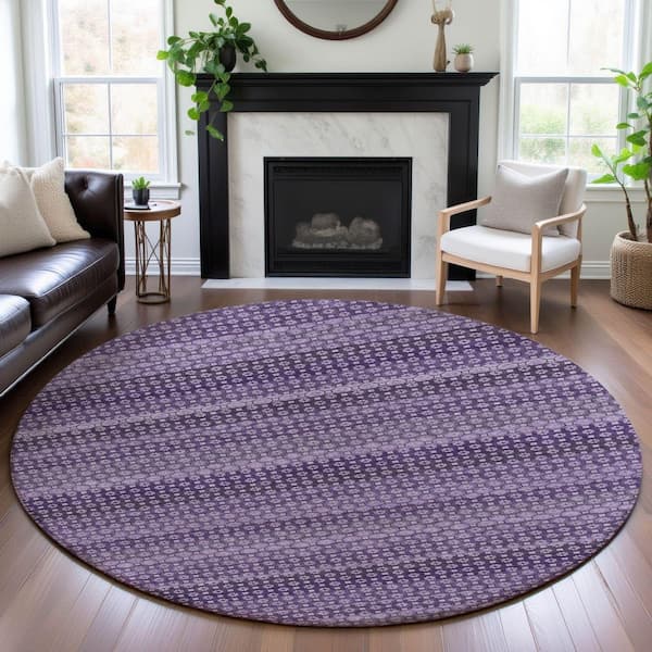 Mayfield Premium Machine Washable Abstract AMF1419 Lavender 8 ft. x 8 ft. Round Rug